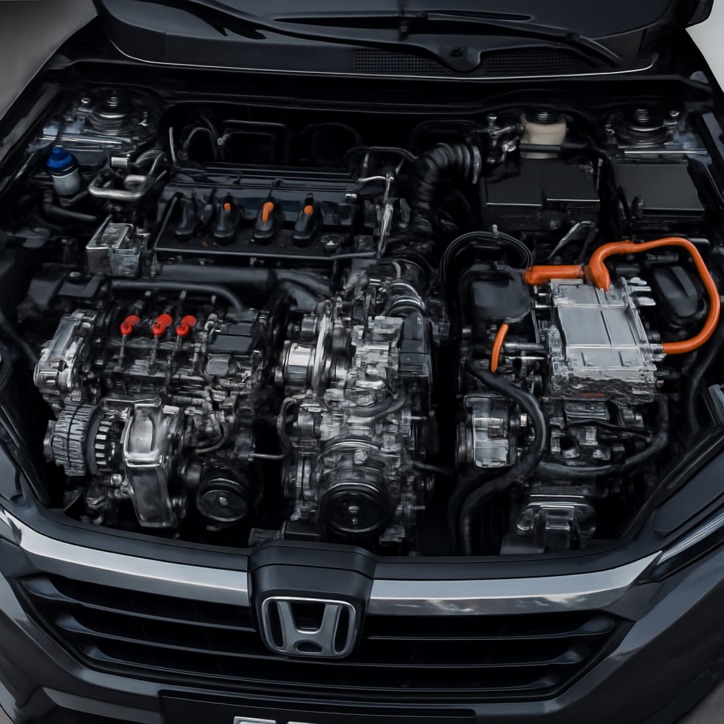 Den nyeste tilskuddet i CR-V-familien er hybridmotoren som kombinerer en 2.0-liters Atkinson-syklus bensinmotor med to elektriske motorer. Det samlede systemet leverer 184 hestekrefter og imponerende 315 Nm dreiemoment. Dette er en selvladende hybrid uten plugg-in-funksjonalitet. Bensinmotoren bruker direkteinnsprøytning, mens de elektriske motorene drives av et litium-ion-batteri. Systemet bytter intelligent mellom elektrisk kjøring, hybrid-modus og direkte motorfremdrift avhengig av kjøreforholdene.