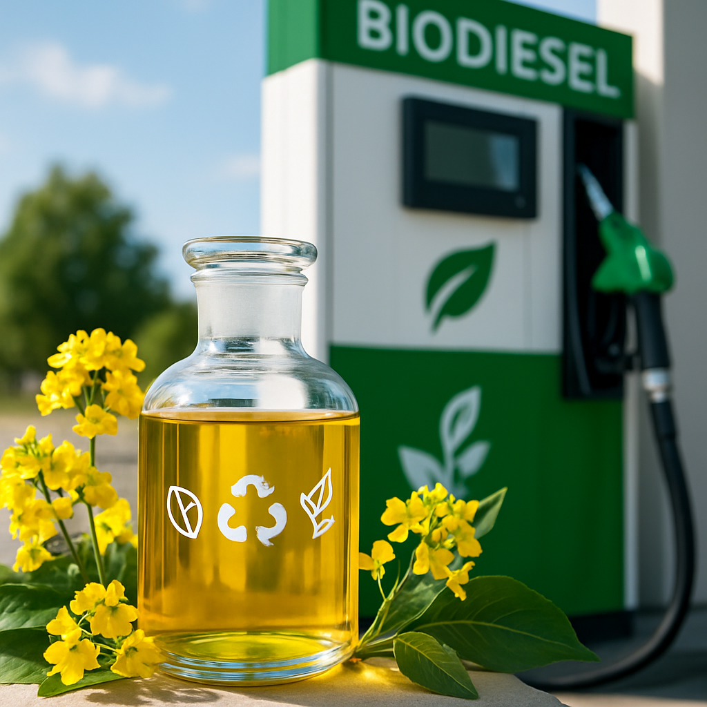 Biodiesel er et fornybart drivstoff laget fra planteoljer, animalsk fett eller resirkulert matolje gjennom en kjemisk prosess kalt transesterifisering. Dette alternative drivstoffet kan brukes direkte i de fleste dieselmotorer uten store modifikasjoner, og det reduserer CO2-utslipp sammenlignet med fossil diesel. Biodiesel produseres ved å kombinere fett eller olje med alkohol og en katalysator, noe som resulterer i en ren forbrenning og mindre skadelige utslipp.