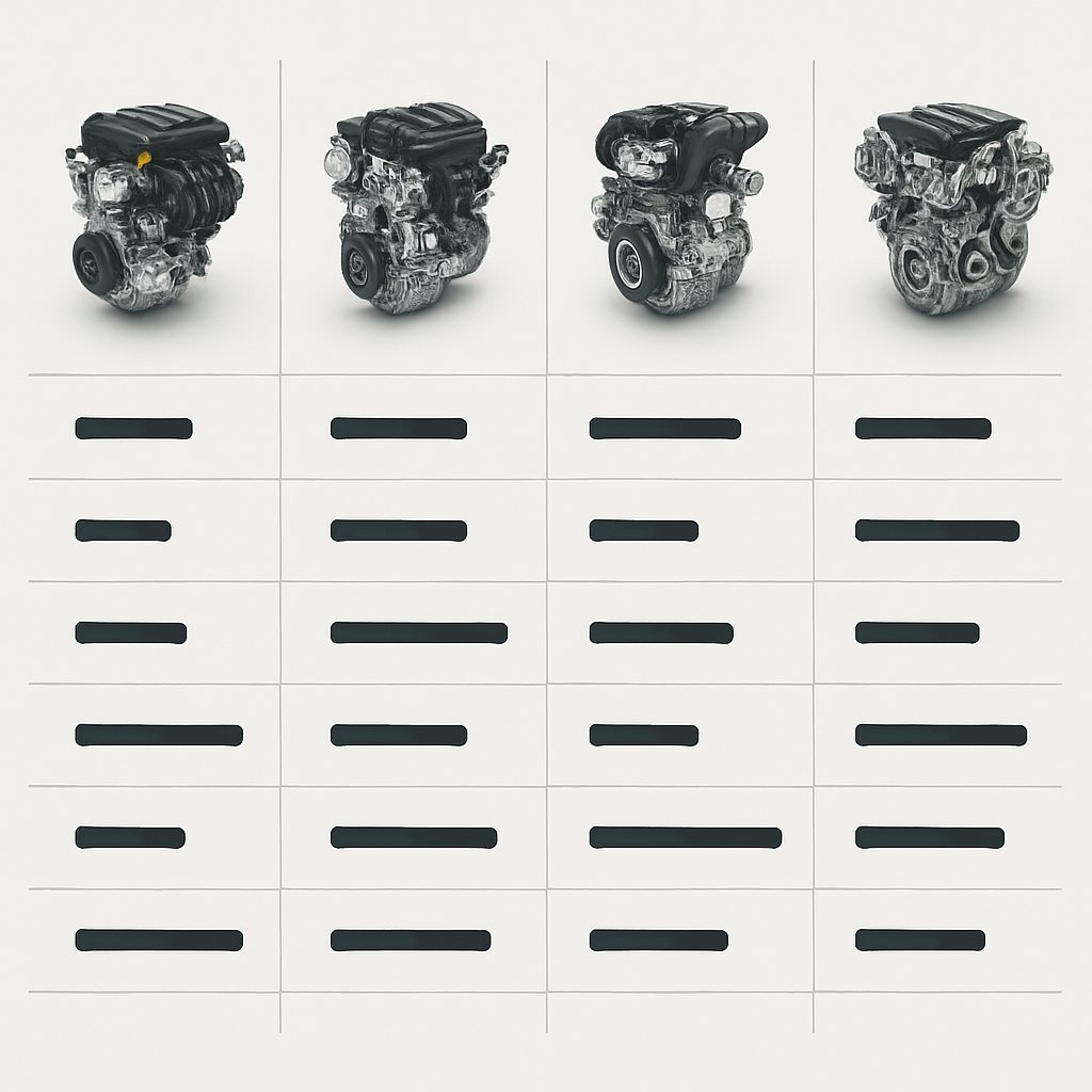 | Motortype | Daglig pendling | Ytelsesbevisste | Langkjøring | Budsjettbevisste |